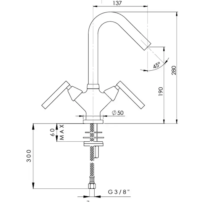 Nicolazzi Flag Смеситель для раковины, встраиваемый, излив: 22см., цвет: хром