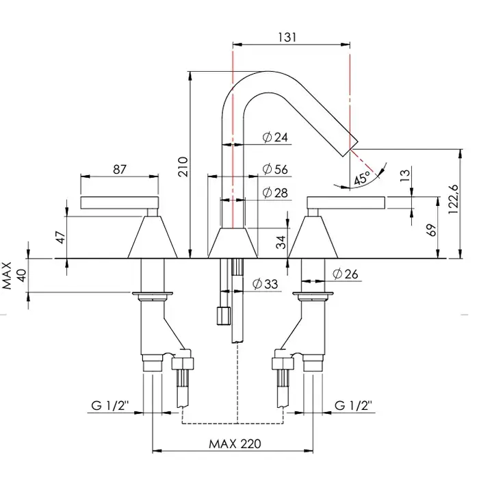 Nicolazzi Flag Смеситель для раковины, встраиваемый, излив: 22см., цвет: хром
