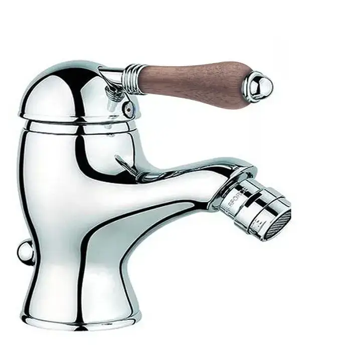 Nicolazzi Forest Смеситель для биде, на 1 отв, с донным клапаном, излив: 107 мм, ручки дерево, цвет: хром