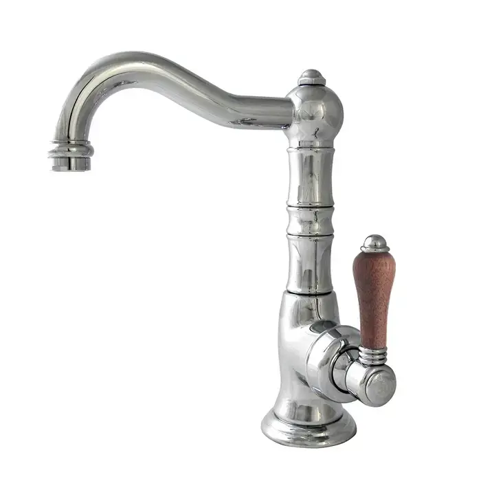 Nicolazzi Forest Смеситель для раковины однорычажный, с донным клапаном, !открыть воду -рычаг влево! ручки дерево, цвет: хром