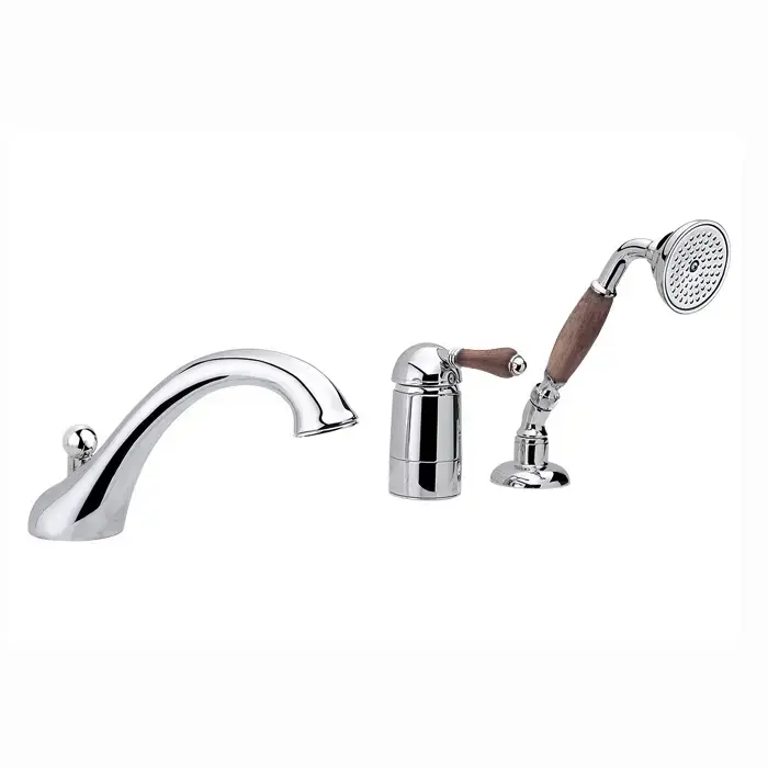 Nicolazzi Forest Смеситель на борт ванны на 3 отверстия, с изливом 200мм и ручным душем, ручки дерево, цвет: хром