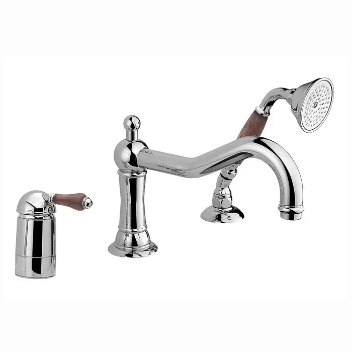 Nicolazzi Forest Смеситель на борт ванны на 3 отверстия, с изливом 246мм и ручным душем, ручки дерево, цвет: хром