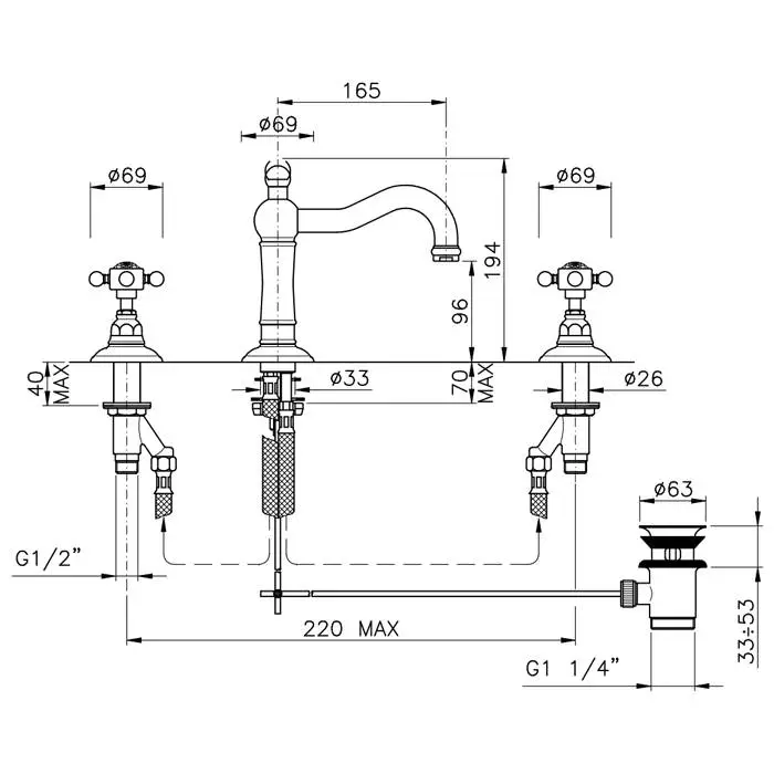Nicolazzi Half Dome Crystal Смеситель для раковины на 3 отверстия, с донным клапаном, излив: 165 мм, цвет: хром