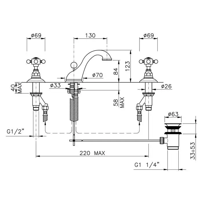 Nicolazzi Half Dome Crystal Смеситель для раковины на 3 отверстия, с донным клапаном, излив: 130 мм, цвет: хром