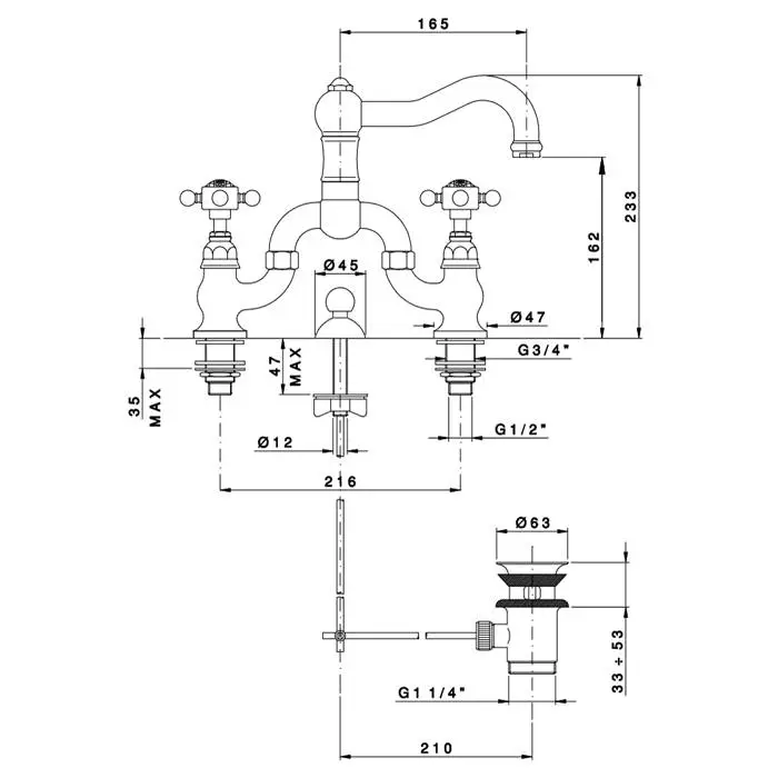 Nicolazzi Half Dome Crystal Смеситель для раковины в виде моста на 3 отверствия, излив: 165 мм, цвет: хром