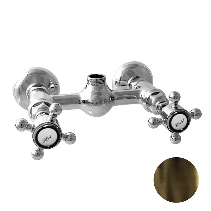 Nicolazzi Half Dome Смеситель для биде с 2мя ручками, на 1 отв., с донным клапаном, излив 127мм, цвет: натуральная латунь