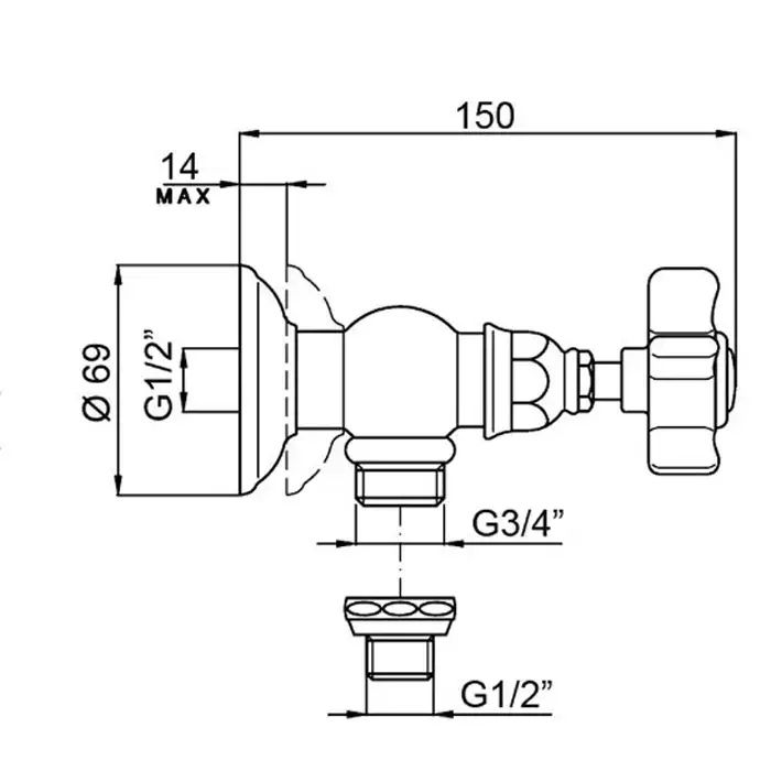 Nicolazzi Dames Anglaises Встраиваемая часть для смесителя 1477EXTCR18 со стены
