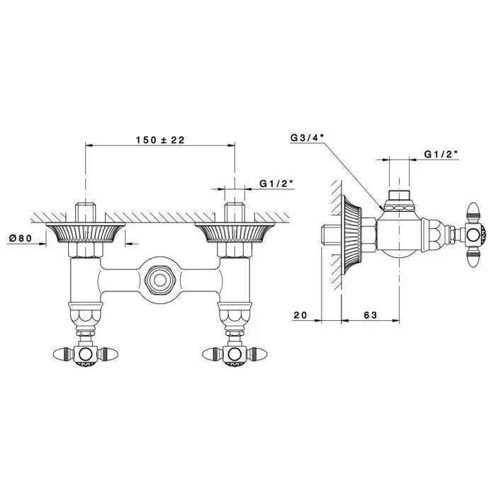 Nicolazzi Impero Смеситель для душа без гибкого шланга и лейки на 2 отверстия, цвет: хром