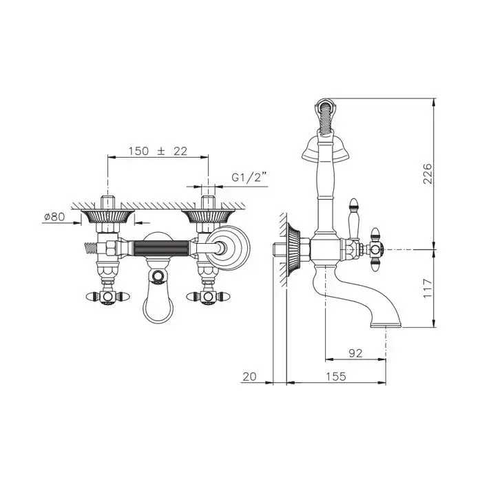 Nicolazzi Impero Смеситель для ванны с 2мя ручками, с переключателем ванна/душ, цвет: золото