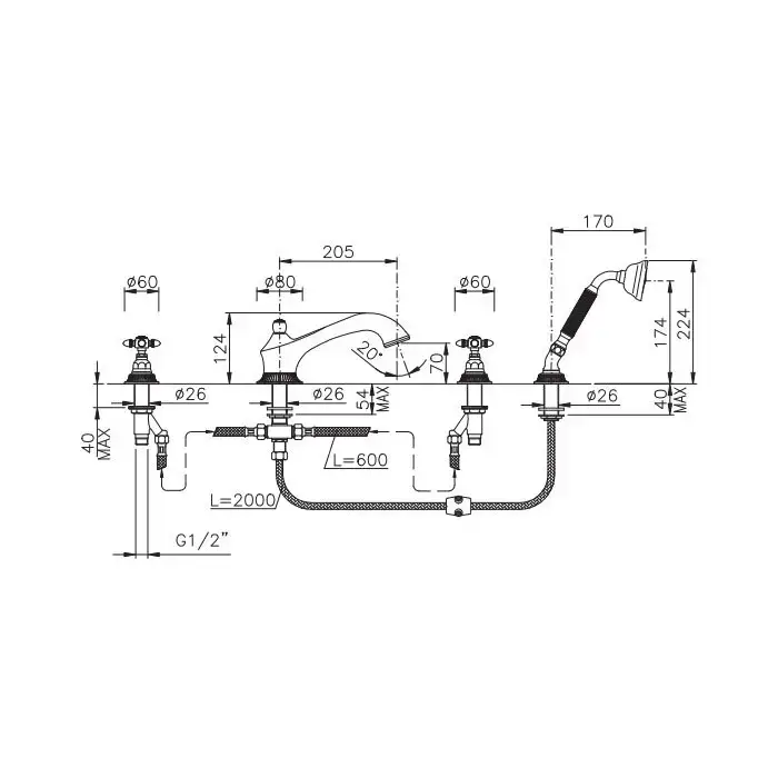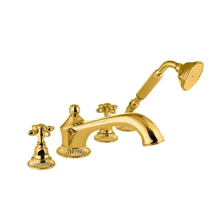 Nicolazzi Impero Смеситель на борт ванны, 4 отв., излив: 205 мм, с ручным душем, цвет: золото
