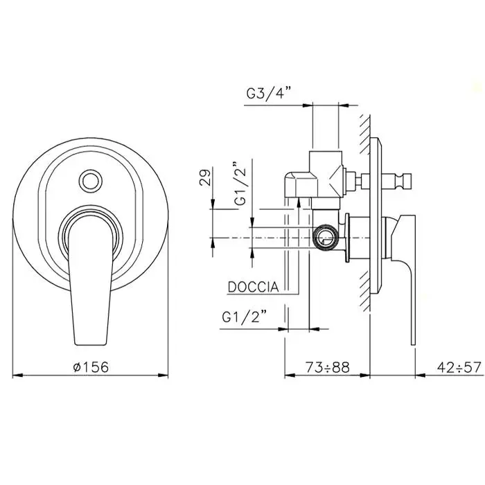 Nicolazzi Jungfrau Смеситель для душа с переключателем, встраиваемый, цвет: хром