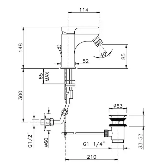Nicolazzi Jungfrau Смеситель для раковины, на 1 отв, с донным клапаном, излив: 114 мм, цвет: хром