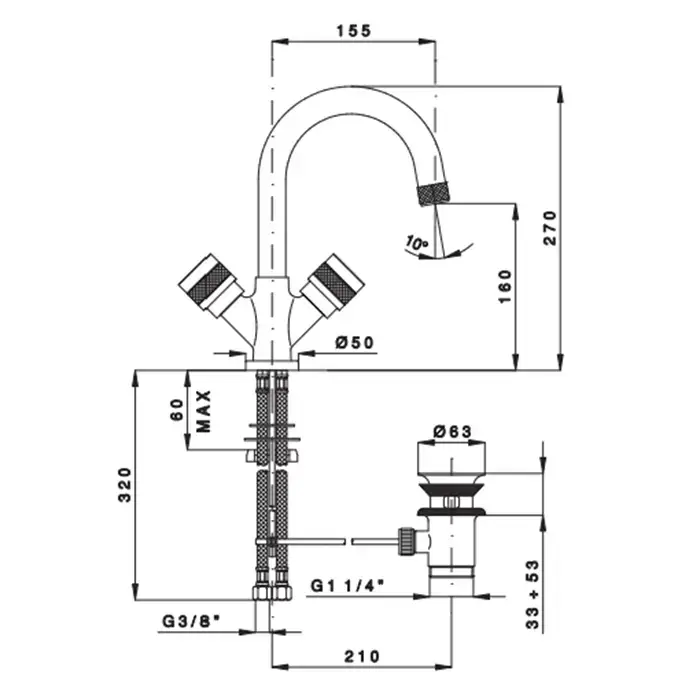 Nicolazzi Khady Смеситель для раковины на 1 отверствие, цвет: Black Nichel/Rose Gold