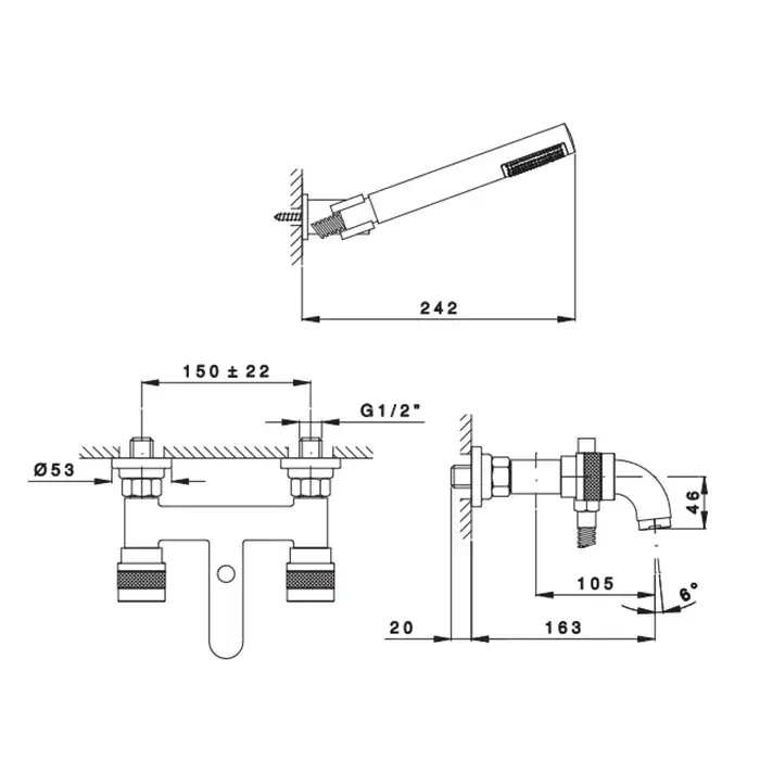 Nicolazzi Khady Смеситель для ванны настенный на 2 отв., с ручной лейкой цвет: Black Nichel/Rose Gold
