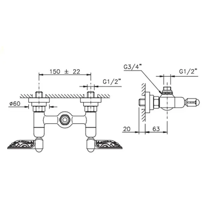 Nicolazzi Liberty Смеситель для раковины настенный, на 3 отв, излив: 177мм, цвет: хром