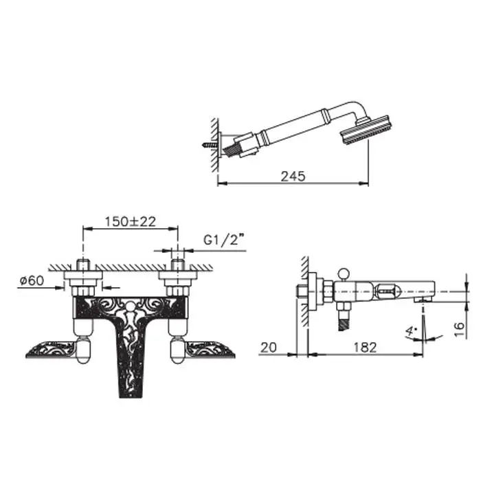 Nicolazzi Liberty Смеситель для раковины настенный, на 3 отв, излив: 177мм, цвет: хром