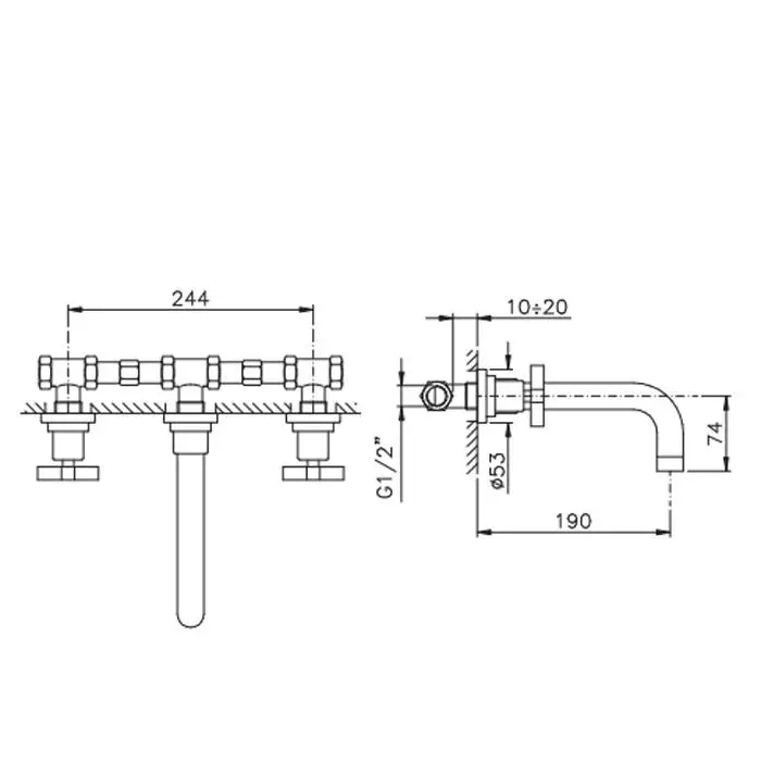 Nicolazzi M.Croce Смеситель для раковины на 3 отверстия, настенный, с внутр. частью, цвет: хром