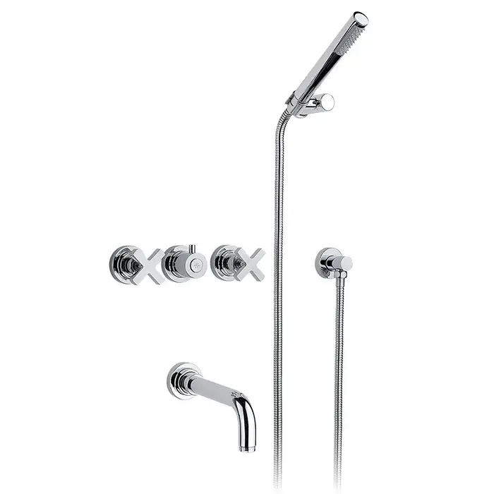Nicolazzi M.Croce Встраиваемый Смеситель для ванны с 2мя ручками с переключателем ванна/душ, + комплект руч. душа, цвет: хром