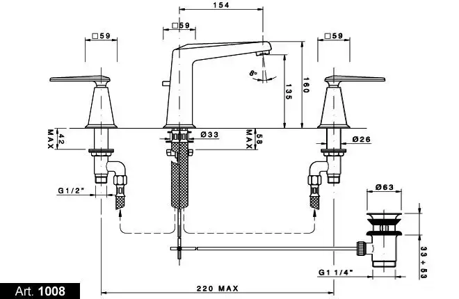 Nicolazzi Margherita Смеситель для раковины на 3 отверстия, излив: 154мм, цвет: золото