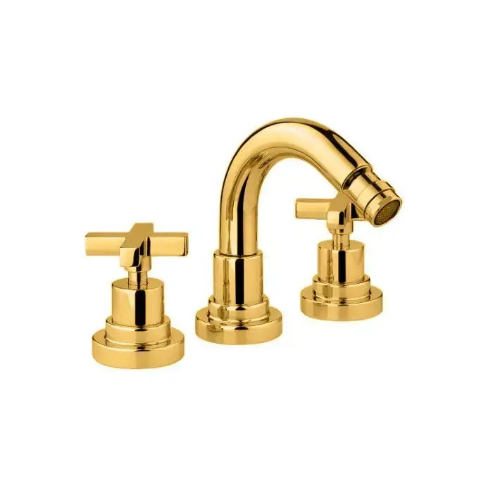 Nicolazzi Monte Croce Смеситель для биде на 3 отверстия, с 2мя ручками, излив: 135мм, цвет: золото