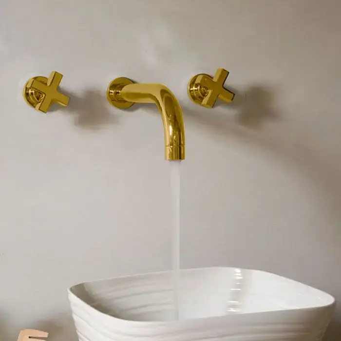 Nicolazzi Monte Croce Смеситель встраиаемый для раковины на 3 отверстия, с 2мя ручками, излив:190мм, цвет: золото