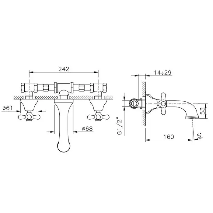Nicolazzi Nuova Brenta Смеситель для раковины с 2мя ручками, настенный, излив: 160мм, цвет: хром