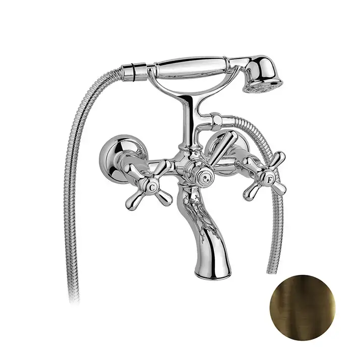 Nicolazzi Nuova Brenta Смеситель для ванны с 2мя ручками, настенный, с душевой лейкой, цвет: бронза