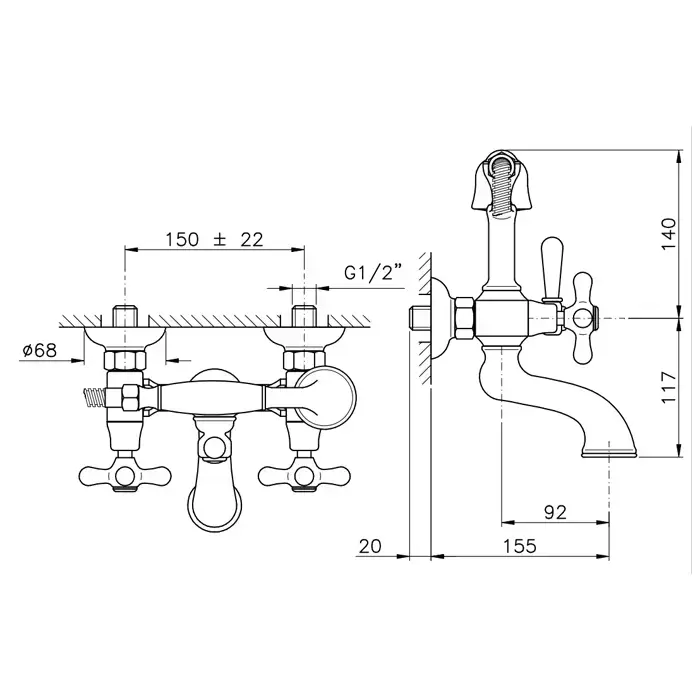 Nicolazzi Nuova Brenta Смеситель для раковины с 2мя ручками, настенный, излив: 160мм, цвет: хром