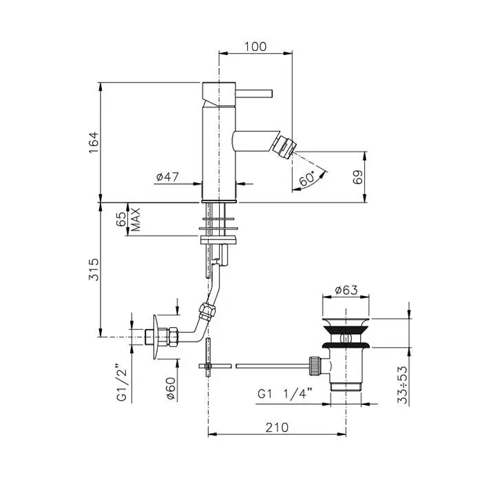 Nicolazzi Olympus Смеситель для биде на 1 отверстие, с донным клапаном, цвет: хром