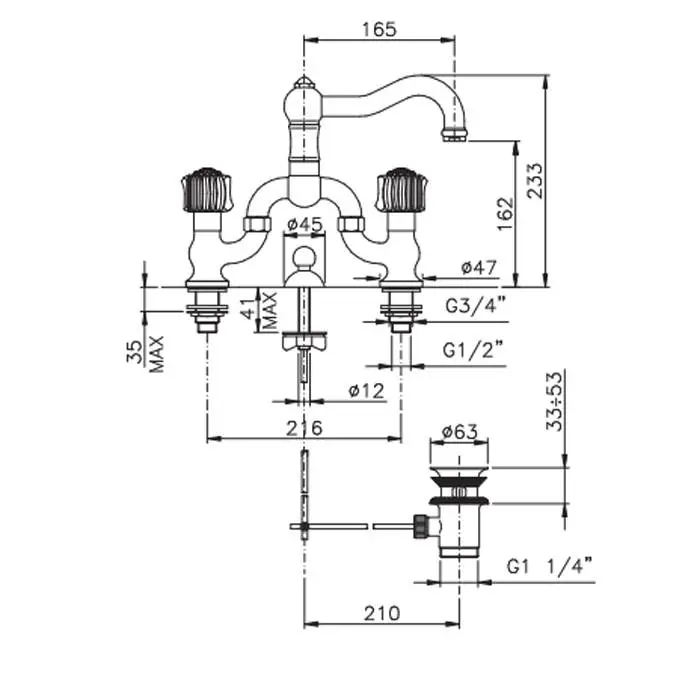 Nicolazzi Onice Смеситель для раковины на 2 отвертсвия с донным клапаном, цвет: хром