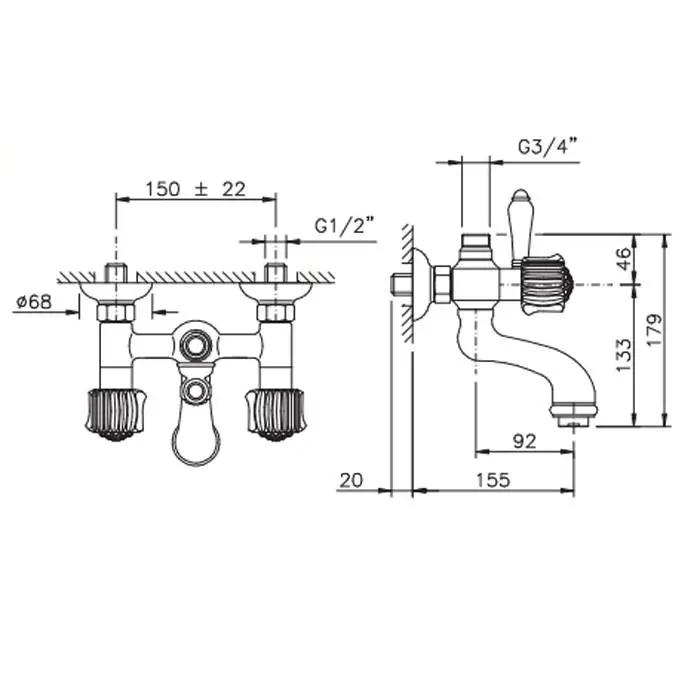 Nicolazzi Onice Смеситель для ванны настенный для душевой стойки, излив: 155 мм, цвет: хром
