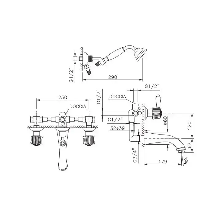 Nicolazzi Onice Смеситель для ванны с 2мя ручками, встроенный, вкл. внутр часть + комплект руч. душа, цвет: золото