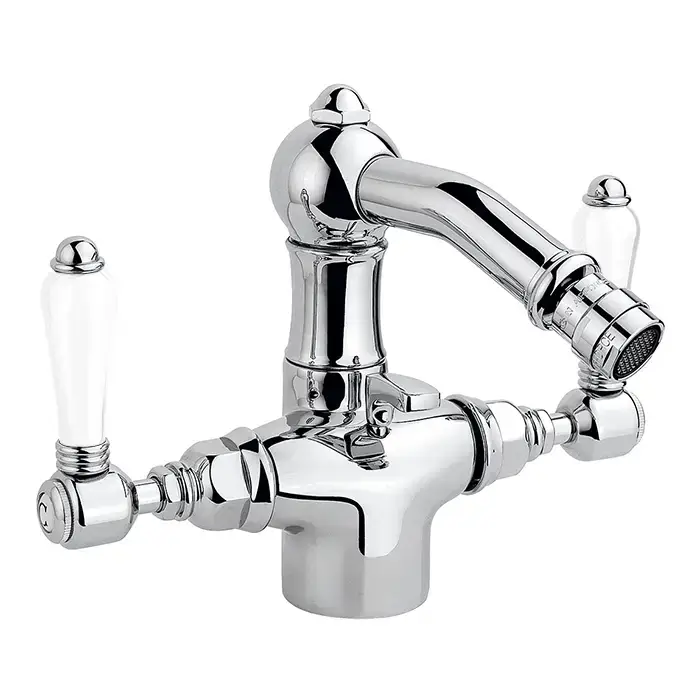 Nicolazzi P.m. Blanc Смеситель для биде, на 1 отв, с донным клапаном, излив: 13.2см, ручки белая керамика, цвет: Bronze Plated