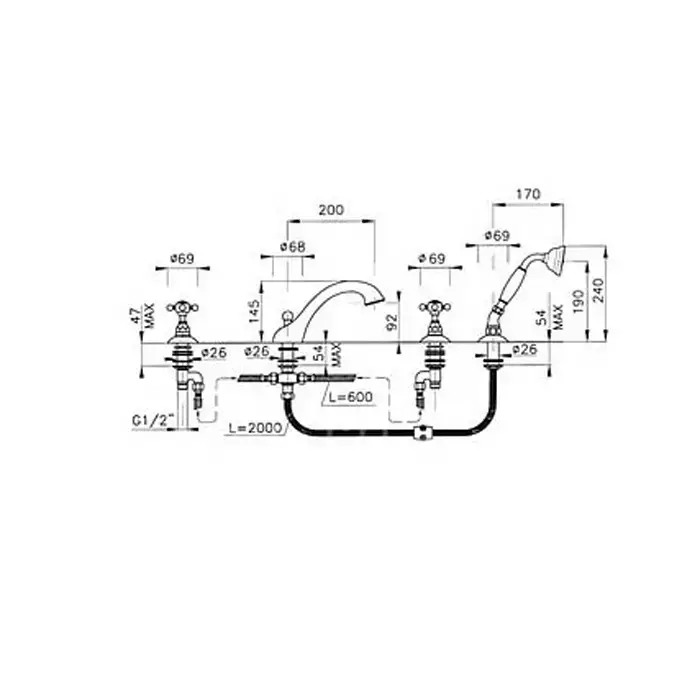 Nicolazzi P.m. Blanc Смеситель для душа на 2 отверстия, вывод сверху 1/2" (без шланга и лейки), ручки белая керамика, цвет: бронза