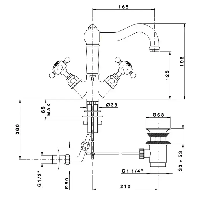 Nicolazzi Petit Mont Blanc Смеситель для раковины, на 3 отв.,с донным клапаном, излив: 165 мм, цвет: хром