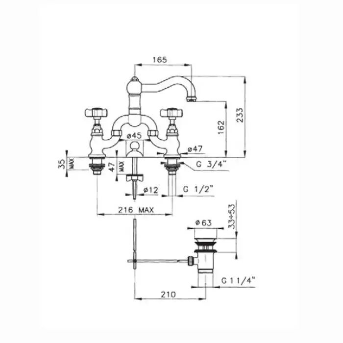 Nicolazzi Petit Mont Blanc Смеситель для раковины, на 3 отв.,с донным клапаном, излив: 165 мм, цвет: хром