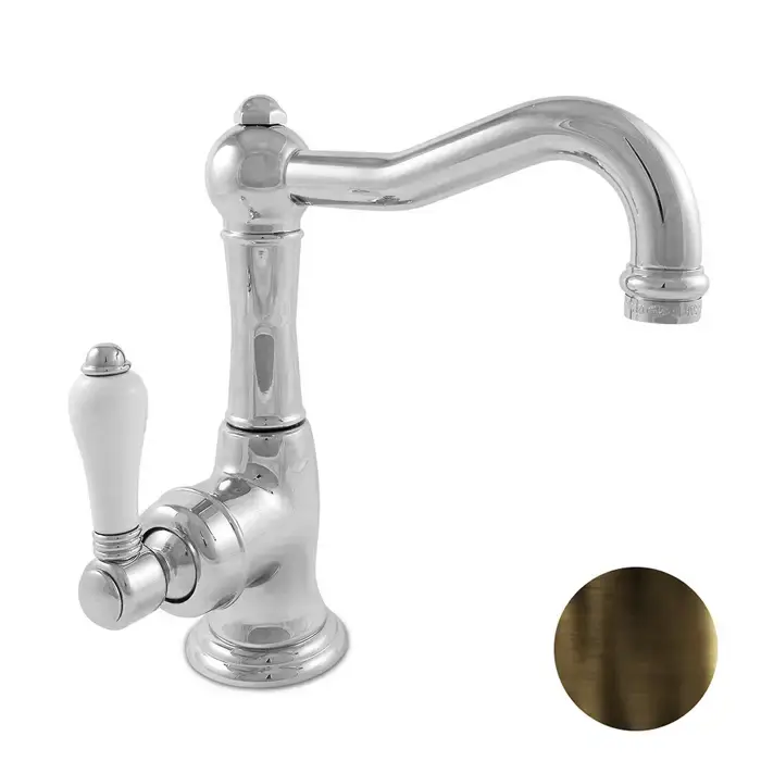 Nicolazzi P.m. Blanc Смеситель для раковины однорычажный, с донным клапаном, ручки белая керамика, цвет: тёмная бронза