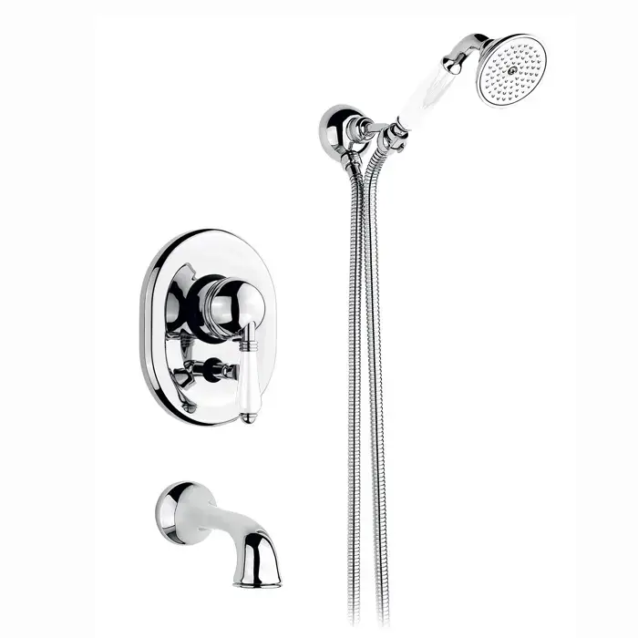 Nicolazzi P.m. Blanc Смеситель для ванны однорычажный, встраиваемый, с изливом 160мм и ручным душем, ручки белая керамика, цвет: хром