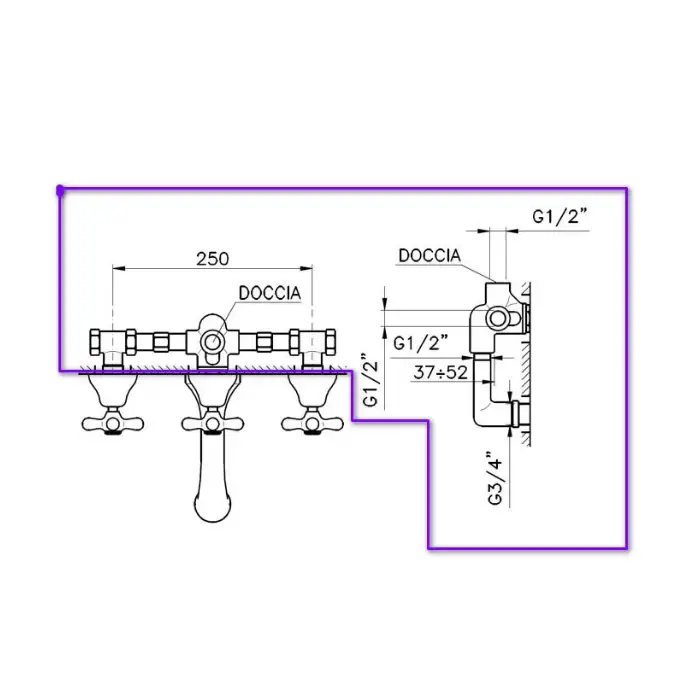 Nicolazzi Petit Mont Blanc Смеситель для душа, настенный, вывод сверху 1/2" (без шланга и лейки), цвет: бронза