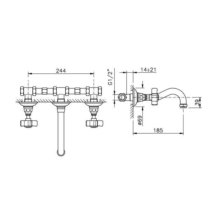 Nicolazzi Petit Mont Blanc Смеситель настенный для раковины с 2мя ручками, цвет: хром (внешняя часть)