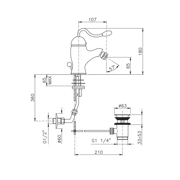 Nicolazzi Signal Смеситель для биде, на 1 отв, с донным клапаном, излив: 107 мм, цвет: хром