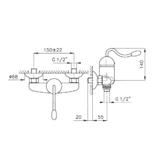 Nicolazzi Signal Смеситель для ванны с душем настенный на 3 отверствия, излив: 157 мм, цвет: хром