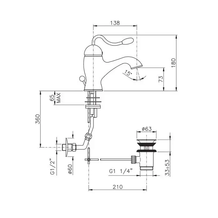 Nicolazzi Signal Смеситель для раковины, с донным клапаном, на 1 отверствие, излив: 138 мм, цвет: хром