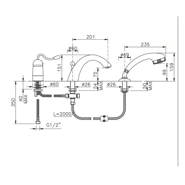 Nicolazzi Signal Смеситель для ванны встраиваемый на 3 отверствия, излив: 178 мм, цвет: хром