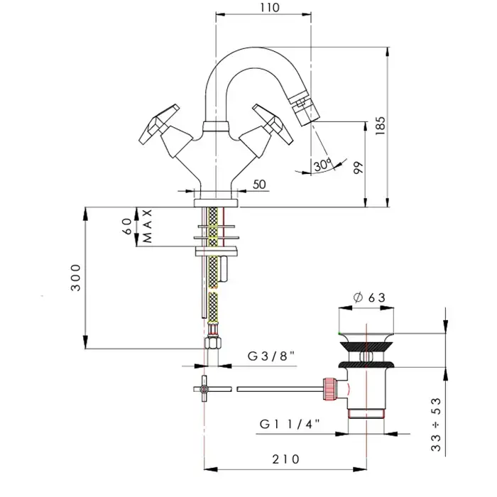 Nicolazzi Flag Смеситель для биде, на 1 отв., с донным клап, цвет: хром