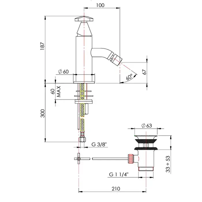Nicolazzi Flag Смеситель для биде, на 1 отв., с донным клап, цвет: хром