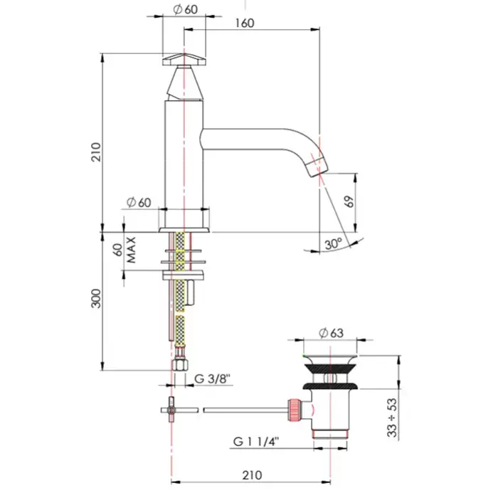 Nicolazzi Flag Смеситель для раковины, на 1 отв., с донным клап, цвет: хром