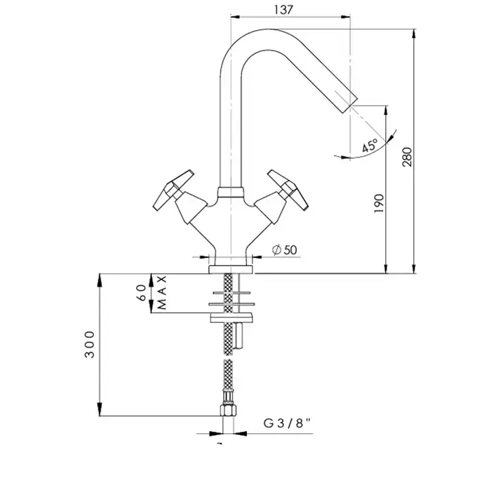 Nicolazzi Flag Смеситель для раковины, встраиваемый, излив: 22см., цвет: хром
