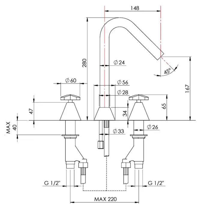 Nicolazzi Star Смеситель для раковины на 3 отв, излив 148 мм, цвет хром