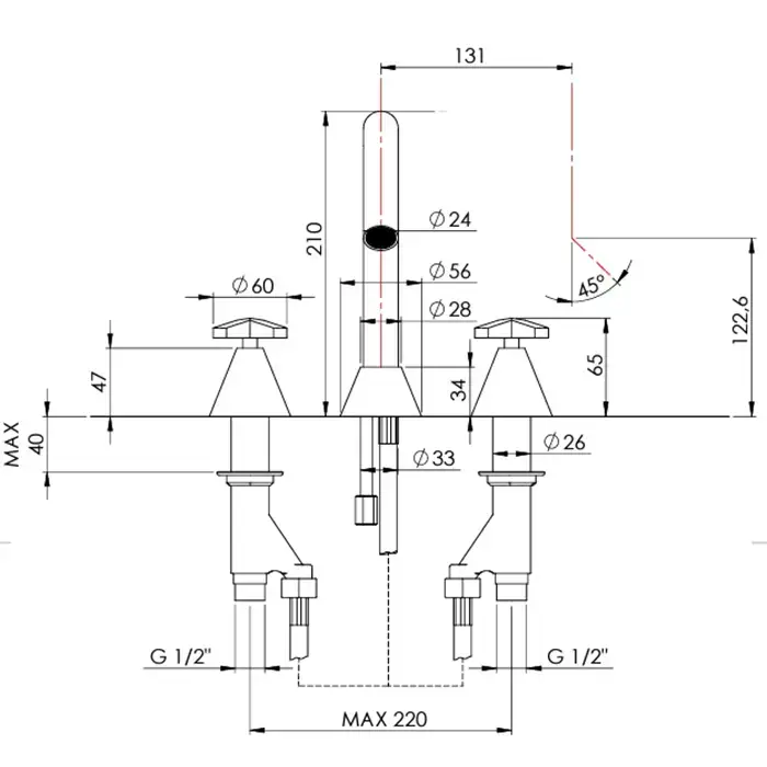 Nicolazzi Flag Смеситель для раковины, встраиваемый, излив: 22см., цвет: хром